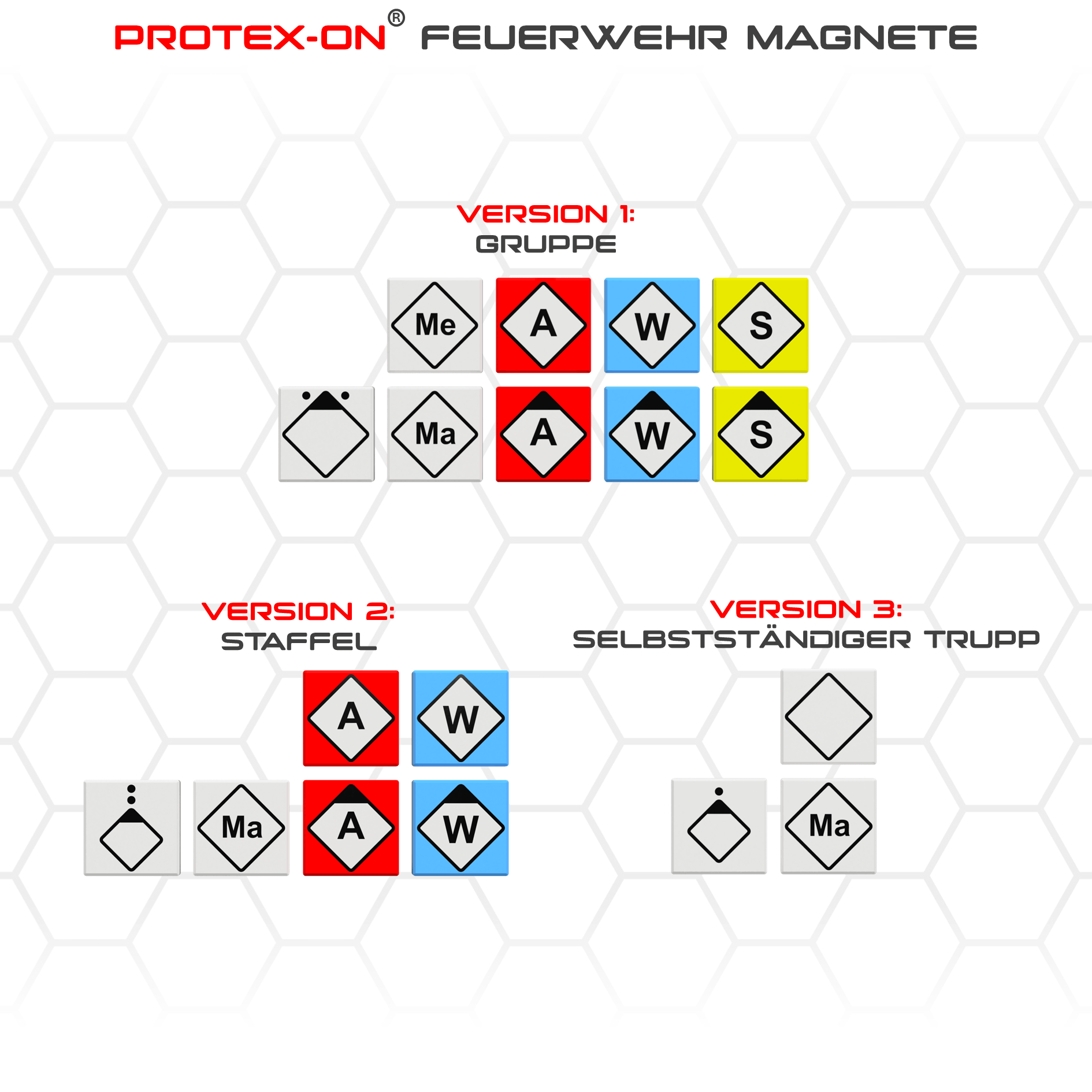 • Version 2: Staffel (6× PROTEX-ON Magnetsteine mit taktischen Zeichen)